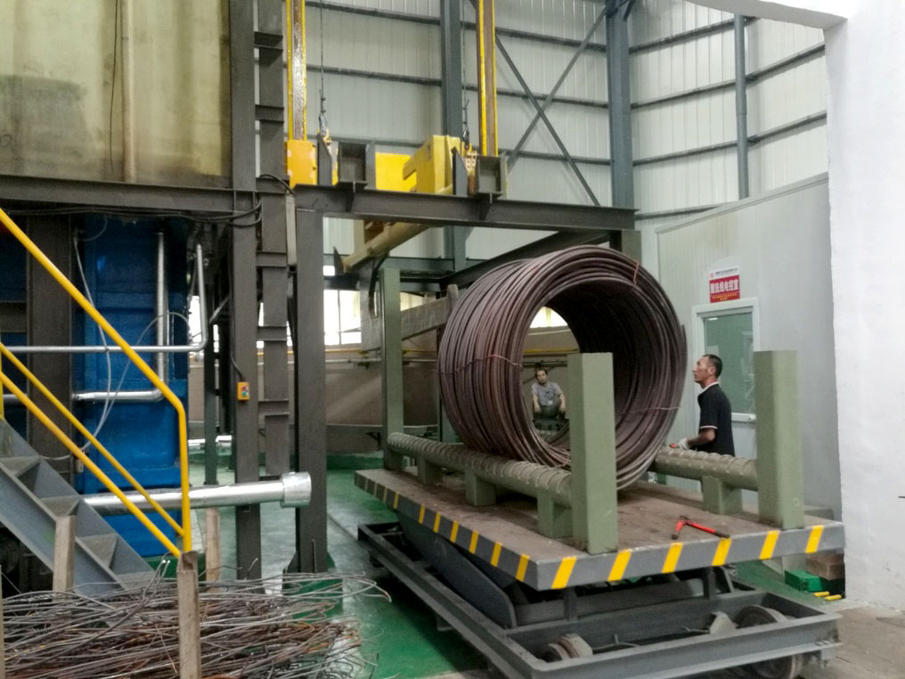 Configuration instructions: The rail conveyor is equipped to cut the material, and the distribution frame and the wire rod rotation function are selected to facilitate the subsequent drawing process.