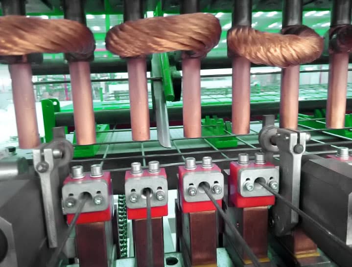 - The line wires are from the coil and the cross wires are falling automatic from the wires hopper.